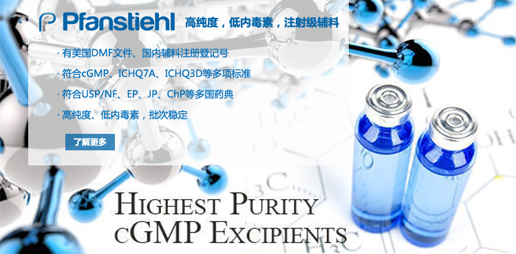 “熱烈祝賀Pfanstiehl的注射級甘氨酸Glycine(G-140)喜獲CDE登記號F20250000403, 這是Pfanstiehl產品獲得的第18個CDE登記號!”甘氨酸在醫藥輔料制劑中應用廣泛,, 可作為緩沖劑,增溶劑,穩定劑等,具有諸多優勢。Pfanstiehl秉承一貫高品質理念,為滿足全球生物制藥行業對于高品質甘氨酸的需求,隆重推出的注射級甘氨酸Glycine (G-140), 具有超高純度,超低內毒素,超低金屬殘留的特點,單獨檢測29種金屬離子,并且新增DNA,RNA,DNA酶,RNA酶和脂肪酶,亞硝酸鹽等多項質量指標的檢測,符合多國藥典規定(USP, EP, BP, JPE, ChP),可用于生物治療性藥物和疫苗的生產。產品信息:· 產品名稱:Glycine, High Purity, Low Endotoxin, Low Metals, USP, EP, BP, JPE, ChP (G-140)· 中文名稱:甘氨酸· 分子式:C2H5NO2· 分子量:75.07 g / mol· CAS號:56-40-6· 產品貨號:G-140產品特點: · 超高純度,超低內毒素,超低微生物含量,超低金屬雜質殘留· 質量指標新增DNA,RNA,DNA酶,RNA酶,脂肪酶和亞硝酸鹽檢測· 符合多國藥典:USP, EP, BP, JPE, ChP· 符合ICH Q3D標準· 符合GMP標準· 已獲DMF和CDE登記號 產品應用:· 緩沖劑· 穩定劑· 增溶劑如果您對Pfanstiehl注射級別Glycine G-140感興趣,歡迎聯系Pfanstiehl 中國區代理商北京西美杰科技有限公司獲得如下詳細的產品概況說明文件和測試樣品。Pfanstiehl Inc.最新產品系列如下,歡迎聯系北京西美杰科技有限公司獲取100g裝免費樣品。北京西美杰科技有限公司為Pfanstiehl中國代理,為客戶提供完善的技術支持與售后服務。歡迎撥打西美杰客服電話400-050-4006或者登陸網站www_xmjsci_com.itfpcb.com了解更多信息。 更多>